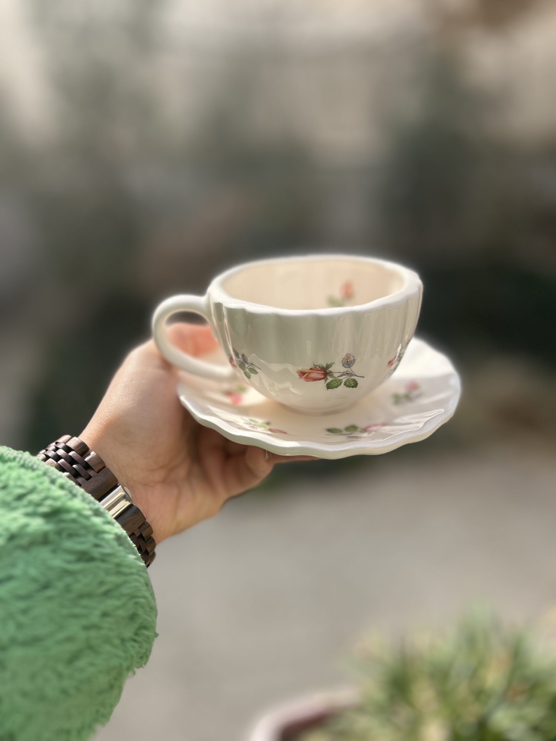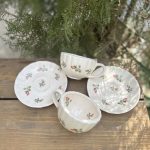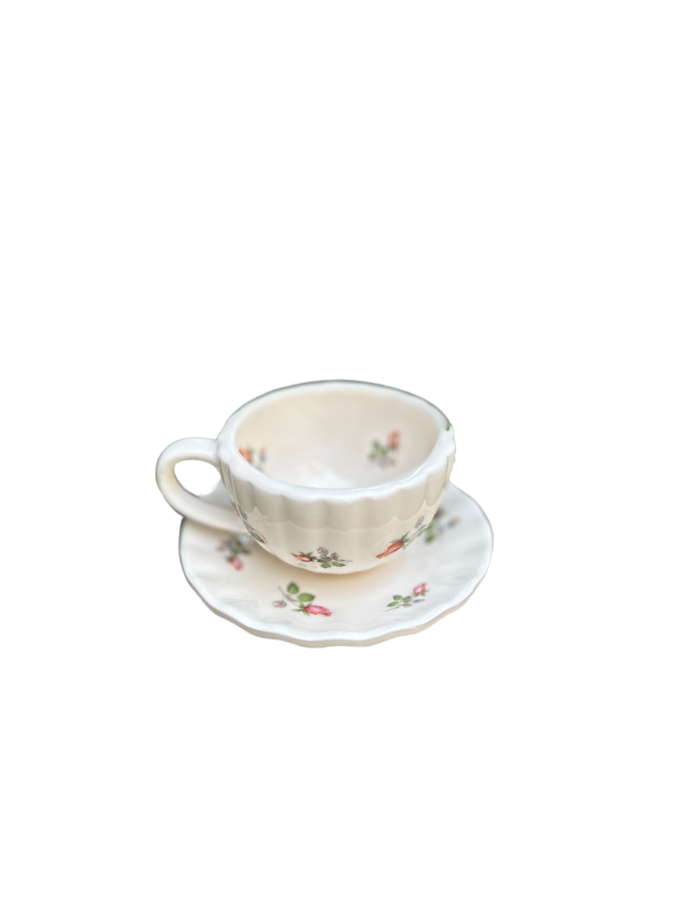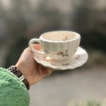 فنجان نعلبکی صدفی با طرح گل لاله شامل یک فنجان لته و یک نعلبکی صدفی با طرح گل لاله است .